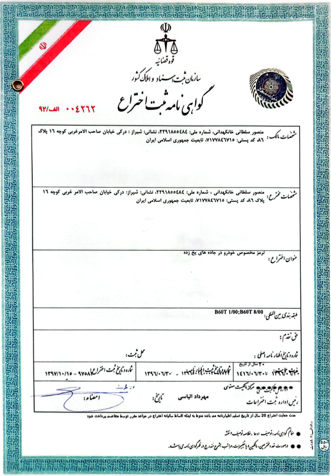 اختراعات ثبت شده شامل دو مورد زیر می باشد